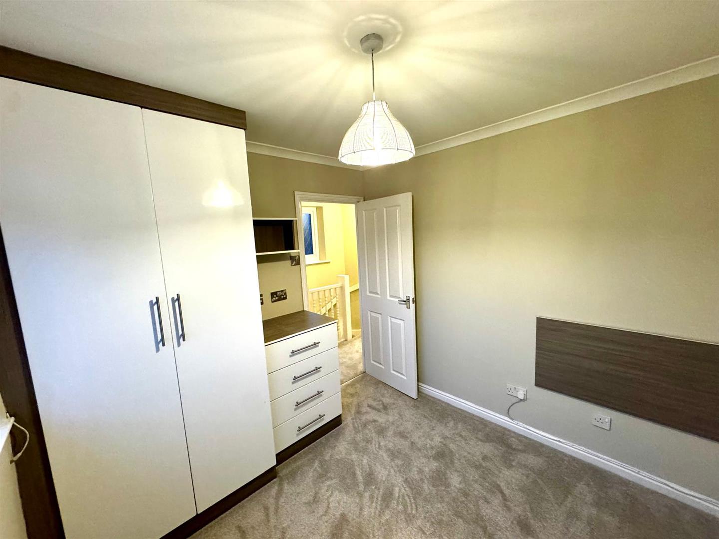 This charming three-bedroom detached house is ideally situated for commuters and access to local schools. The entrance hall opens into a spacious through lounge featuring wooden wall-mounted shelving. At the rear, there is a dining area with French doors that lead out to the garden. The kitchen includes white units, a gas hob, electric oven, and washing machine. Upstairs, there are two double bedrooms, both with fitted wardrobes, and a single bedroom that would make an ideal office. The bathroom is fitted with a three-piece white suite and a thermostatic shower over the bath. The property also benefits from front and rear gardens, with a summer house located in the rear garden. EPC rating of D, Council Tax Band D.