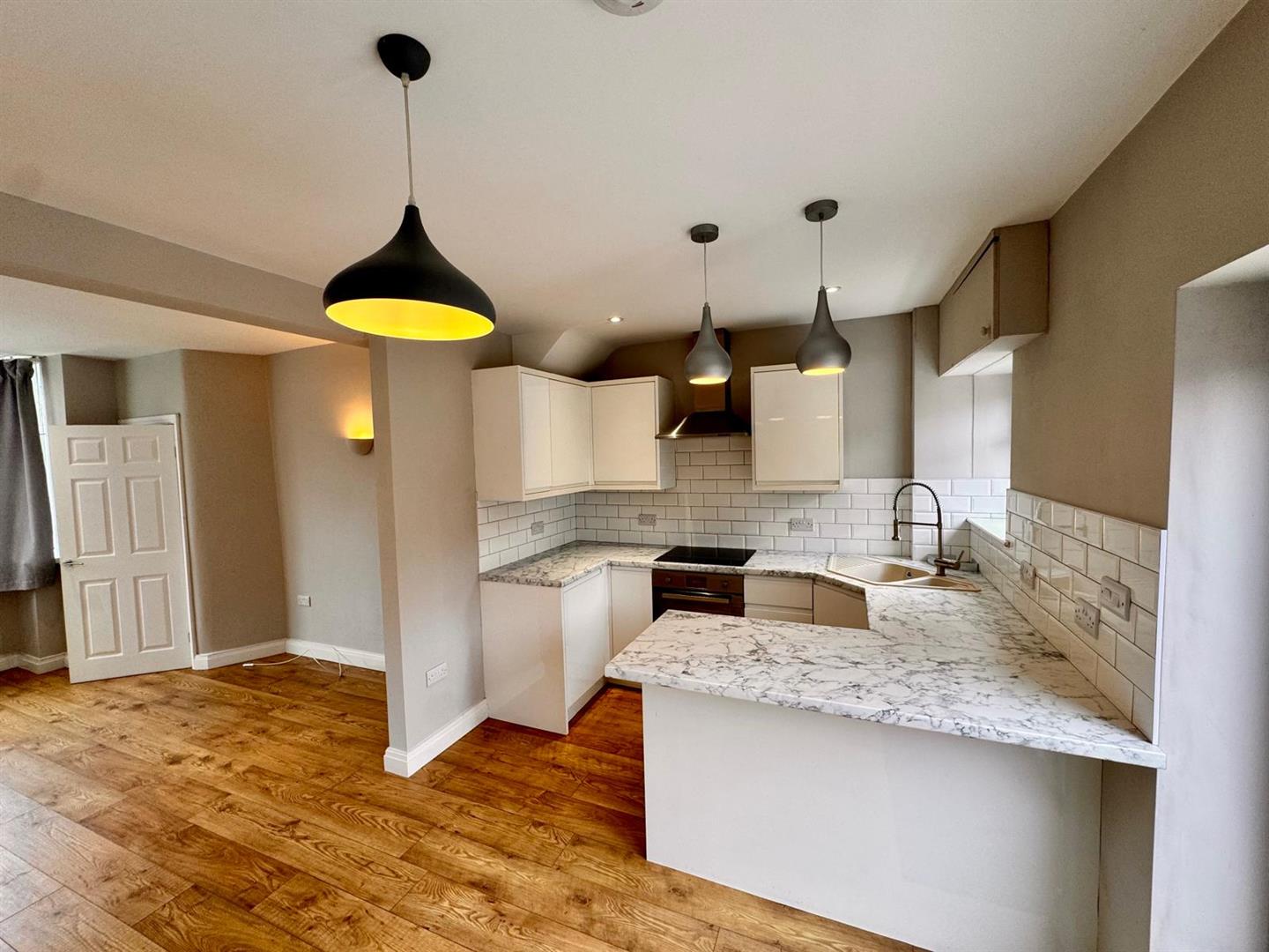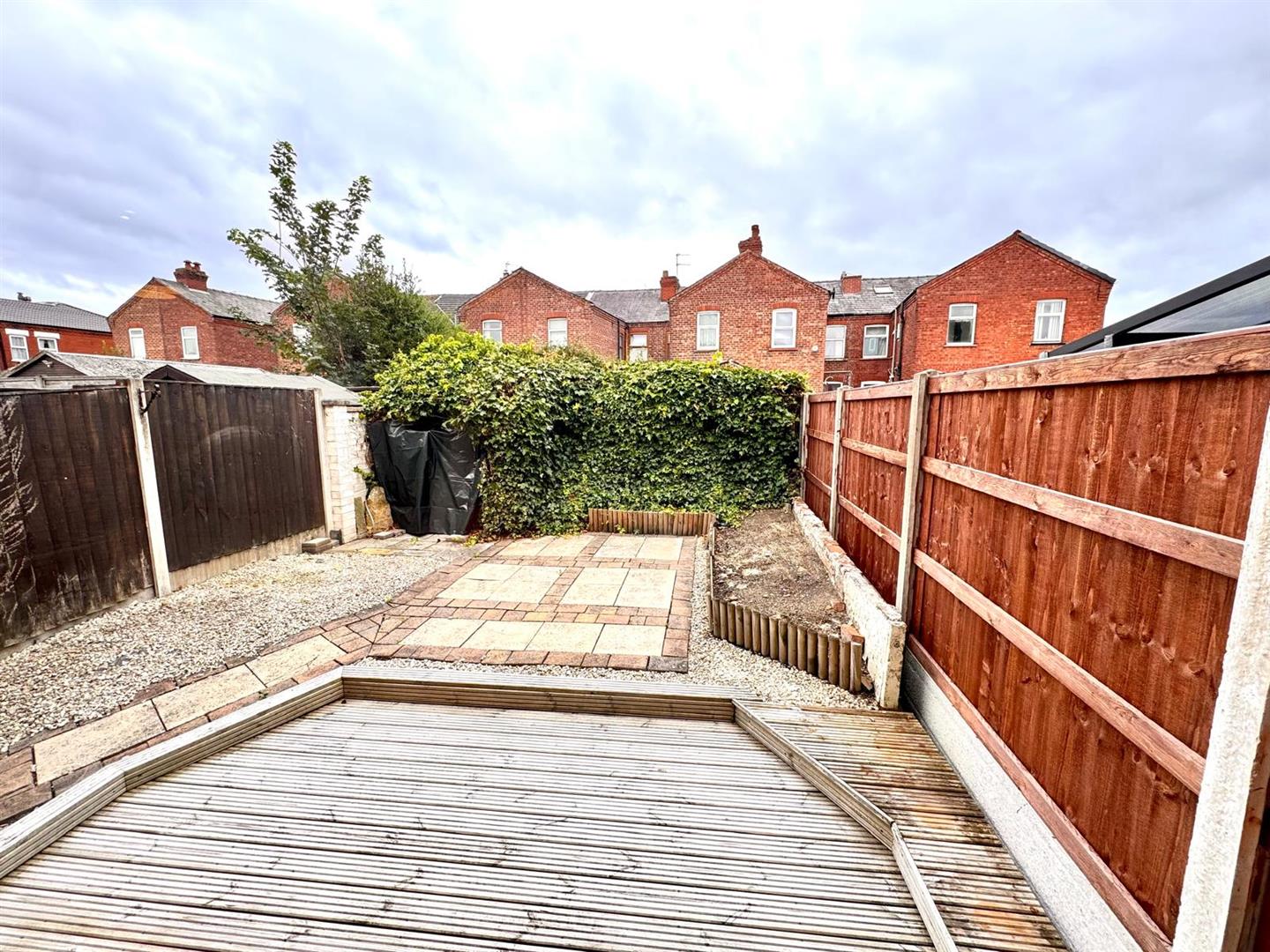 This well-presented three-bedroom property in Offerton offers stylish and comfortable living throughout. The open-plan ground floor features a spacious galley-style living area that flows seamlessly into a kitchen fitted with white cupboards and marble-effect worktops. The rear garden includes both decking and a patio area, providing a great space for outdoor relaxation. Upstairs, there are three well-proportioned bedrooms, two of which are doubles, all finished with grey carpets. Feature wall lights and vertical radiators add a sleek touch to the interior. The bathroom includes a white three-piece suite with an over-bath shower. The property offers a thoughtful layout across both floors. Ideally located in a popular residential area, this home is available to let. Council Tax Band B. EPC rating of C.